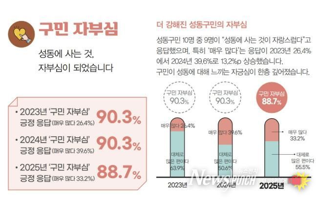 성동구의 구정운영과 생활환경에 대한 만족감이 지역 공동체에 대한 애정과 자긍심으로 드러난다는 점도 다시 한번 확인됐다. “성동구민으로서 자부심을 느낀다”는 질문에 대해 긍정적으로 답한 응답자는 성동구민 열 명 중 아홉 명(88.7%)에 이르는 것으로 나타났으며, 최근 3년 평균 또한 89.7%로 매우 높은 수준을 유지하는 것으로 조사됐다. 이는 성동구에 대한 신뢰가 단순 만족을 넘어 공동체적 정체성으로까지 확장되고 있음을 보여주는 것으로 풀이된다.