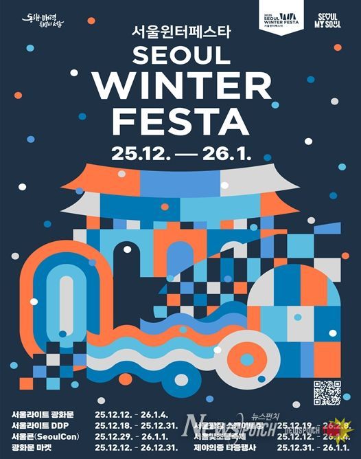 서울시는 12월 12일부터 2026년 1월 4일까지 24일간, 광화문광장~청계천~서울광장~DDP~보신각~우이천 6곳을 잇는 초대형 겨울축제 '2025 서울윈터페스타'를 개최한다고 밝혔다. 올해 행사는 궁중문화축전 및 전국무용제 등 대한민국 대표축제를 성공적으로 이끈 이재원 총감독이 지휘한다.