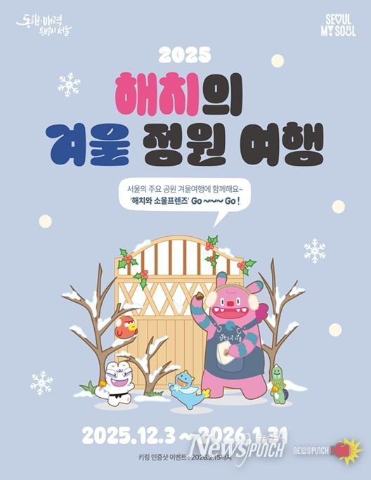 뉴스펀치 김완규 기자 | 이번 겨울, 직접 ‘해치’가 되어 서울 공원에 숨어있는 ‘해치의 친구들’을 만나러 떠나는 특별한 여행을 해보는 건 어떨까? 지난해 큰 사랑을 받은 ‘해치의 겨울정원여행’이 올해에도 돌아왔다.