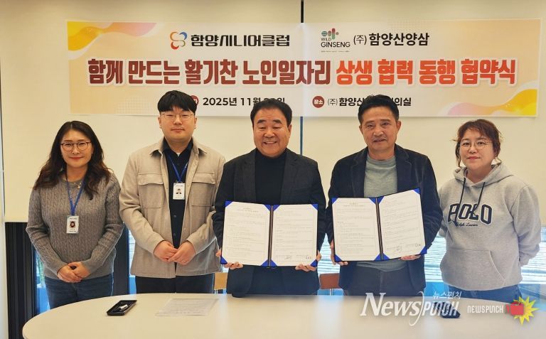 뉴스펀치 김길룡 기자 | 함양시니어클럽(관장 김용환)은 21일 글로벌 수출 선도기업인 농업회사법인 ㈜함양산양삼(대표 이종상)과 노인일자리사업 및 지역사회 상생발전을 위한 업무협약(MOU)을 체결했다고 밝혔다.
