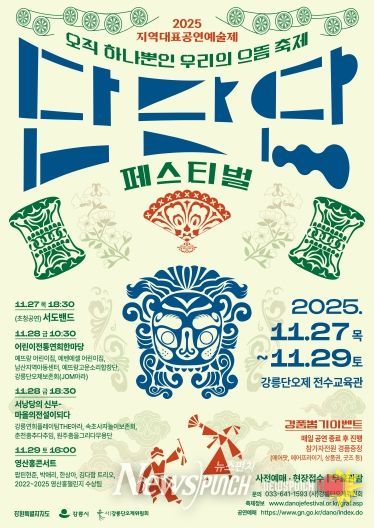 뉴스펀치 김길룡 기자 | (사)강릉단오제위원회는 오는 11월 27일부터 29일까지 강릉단오제전수교육관 일원에서 ‘2025 단단단페스티벌’을 개최한다고 밝혔다. ‘단단단(端單團)’은 으뜸 단(端), 오직 하나 단(單), 우리 단(團)을 뜻하며 “오직 하나뿐인 우리의 으뜸 축제”를 의미한다.