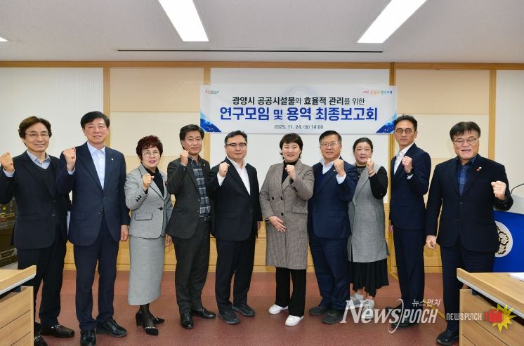 뉴스펀치 김길룡 기자 | 광양시의회 공공시설물의 효율적 관리 연구모임(대표의원 김보라)은 지난 24일 의회 상담실에서 ‘광양시 공공시설물 효율적 관리 방안 연구용역 최종보고회’를 개최했다.