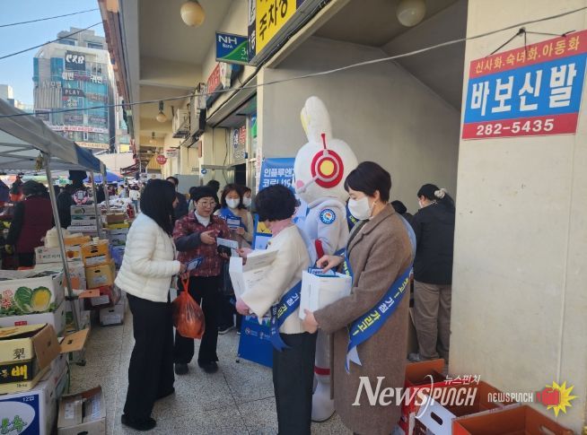 뉴스펀치 김길룡 기자 | 경상남도는 24일 오후 1시 창원 상남시장에서 경상남도 감염병관리지원단, 창원시창원 보건소와 함께 최근 인플루엔자 의사환자 증가하고 있어, 예방접종 및 개인위생수칙 준수 당부 합동 캠페인을 펼쳤다고 밝혔다.