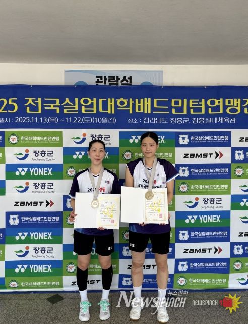 뉴스펀치 김길룡 기자 | 충북 영동군청 배드민턴부가 지난 13일부터 22일까지 10일간 전남 장흥군에서 개최된 2025 전국실업대학배드민턴연맹전 여자일반부에서 뛰어난 기량을 발휘하며 우승을 포함해 4개의 메달을 차지했다.