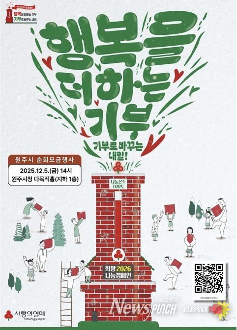 뉴스펀치 김길룡 기자 | 강원도사회복지공동모금회가 주관하는 ‘희망2026 나눔캠페인’ 원주시 순회 모금 행사가 오는 5일 오후 2시, 원주시청 지하1층 다목적홀에서 개최된다.