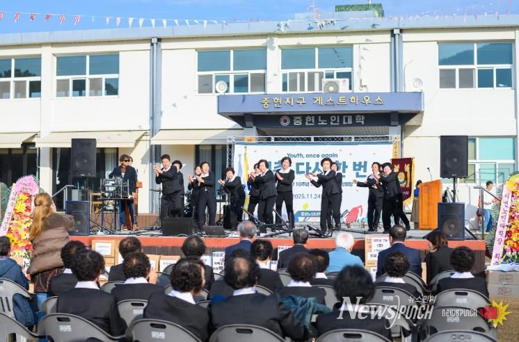 뉴스펀치 김길룡 기자 | 중현노인대학은 지난 24일 중현노인대학 운동장에서 ‘개교 10주년 기념식 및 어울림한마당’ 행사를 개최했다.