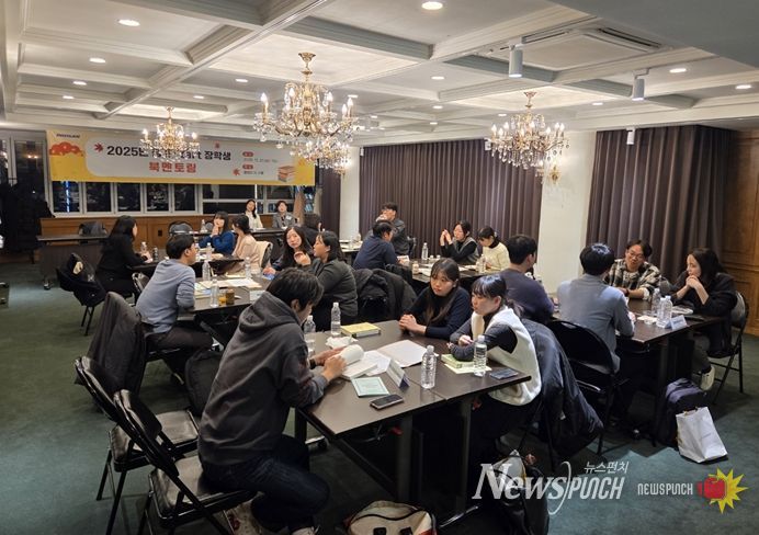 뉴스펀치 김완규 기자 | 서울장학재단은 11월 21일 저녁 7시, 서울 종로구 일대에서 ㈜두산과 함께하는 ‘청춘Start 장학생 북멘토링’을 개최했다. 이날 행사에는 ㈜두산 임직원 멘토와 ‘청춘Start’ 3기부터 13기 장학생 등 총 18명이 참석해 책을 매개로 한 멘토링 프로그램을 진행했다.