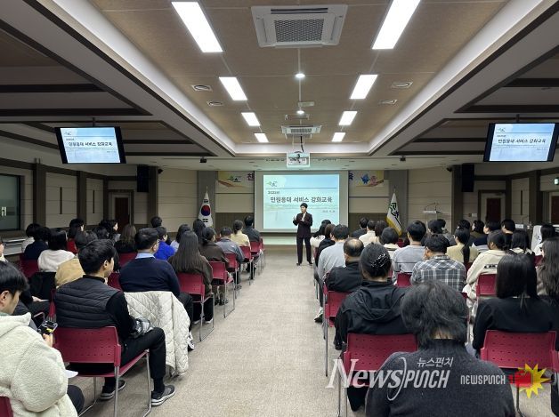교육은 실무 중심으로 구성됐으며 ▲친절서비스 기본 개념 이해 ▲2025년 전화민원 모니터링 결과 분석 및 피드백 ▲친절 응대 실습 코칭 ▲악성 및 특이 민원 대응 전략과 감정관리 요령 등으로 진행됐다.