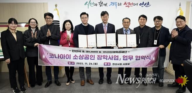 뉴스펀치 김길룡 기자 | 안산시는 지난 24일 코나아이 및 안산인재육성재단과 ‘코나아이 소상공인 장학사업’ 추진을 위한 3자 협약을 체결했다고 25일 밝혔다.