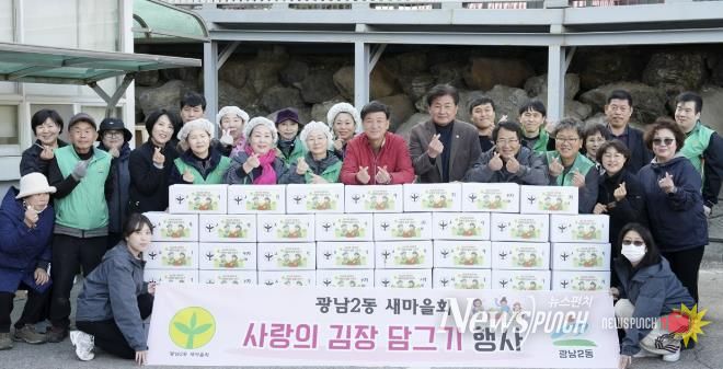 뉴스펀치 김길룡 기자 | 광주시 광남2동 새마을회는 지난 22일 지역 내 취약계층의 겨울나기를 돕기 위해 ‘사랑의 김장담그기’ 행사를 진행했다.