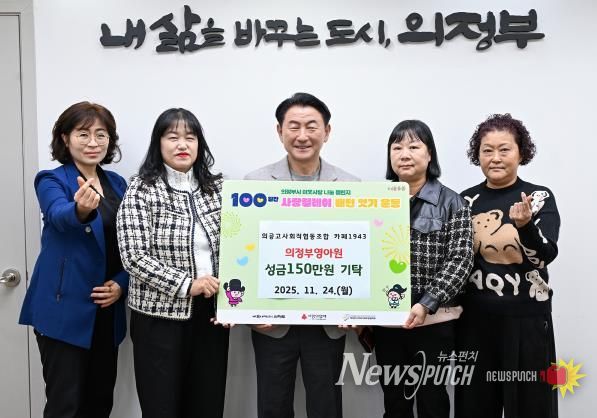 뉴스펀치 김길룡 기자 | 의정부시는 11월 24일 의공고사회적협동조합 카페1943이이 의정부영아원에 성금 150만 원을 기부했다고 밝혔다.
