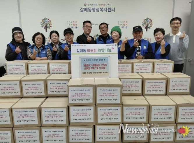 뉴스펀치 김길룡 기자 | 구리시는 지난 24일 갈매동 행정복지센터에서 갈매동 바르게살기위원회가 관내 한파 취약계층을 위한 식료품 세트를 갈매동 행정복지센터에 전달하여 ‘겨울맞이 식료품 세트 전달식’을 진행했다고 밝혔다.