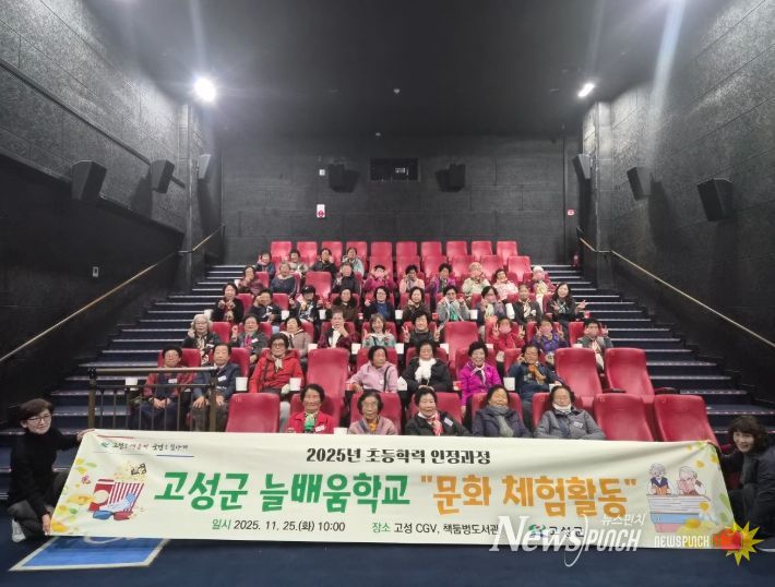 뉴스펀치 김길룡 기자 | 고성군은 평생학습 기회 확대와 문화적 소양 함양을 위해 11월 25일, 초등학력 인정과정 고성군 늘배움학교 학생 50명 대상으로 ‘영화·도서관 문화체험 학습’ 을 진행했다.