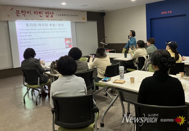 뉴스펀치 김길룡 기자 | 통영시는 꿈이랑도서관에서 성인을 대상으로 지난 15일과 23일 박경리 작가의 소설 '토지'를 주제로 한 음식 인문학 수업과 요리체험 특화프로그램이 성황리에 마무리했다.