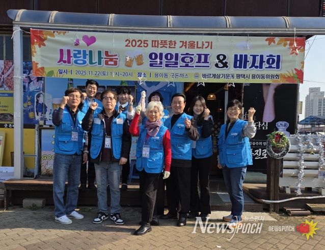 뉴스펀치 김길룡 기자 | 바르게살기운동 평택시 용이동위원회는 지난 22일 지역사회 나눔 활동의 하나로 ‘사랑 나눔 일일호프&바자회’를 개최했다.