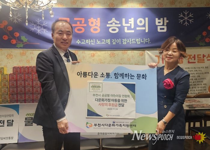뉴스펀치 김길룡 기자 | 부천시 공공형어린이집연합회는 부천시다문화가족지원센터에 다문화가정 자녀들을 위한 기부금을 전달했다.