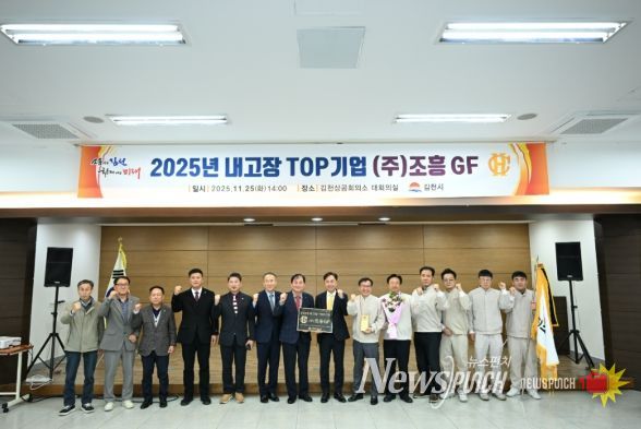 뉴스펀치 김길룡 기자 | 김천시는 2025년 내고장 TOP기업으로 ㈜조흥GF(대표 함영제)를 선정하고 지난 11월 25일 김천상공회의소에서 선정식을 개최했다.