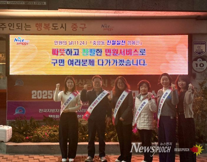 뉴스펀치 김길룡 기자 | 부산 중구 중앙동은 제4회 민원의 날을 맞아 11월 24일 월요일부터 11월 28일 금요일까지 5일간 '중앙동 친절실천 캠페인' 주간을 전개한다.