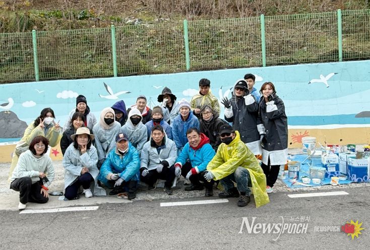 소이작도에서는 학생·교직원 28명이 치안센터 앞 주차장에서 시작해 이어지는 도로 옹벽의 경관을 개선하는 활동을 펼쳤다. 이어 도로를 따라 ‘바다’를 주제로 한 옹벽 벽화 조성 작업을 진행했으며, 전문가도 함께 참여해 완성도를 높였다. 학생 디자인 공모로 선정된 작품을 바탕으로 완성된 벽화는 단조로웠던 옹벽을 생동감 있게 바꾸어 주민과 관광객에게 밝고 쾌적한 경관을 제공했다.