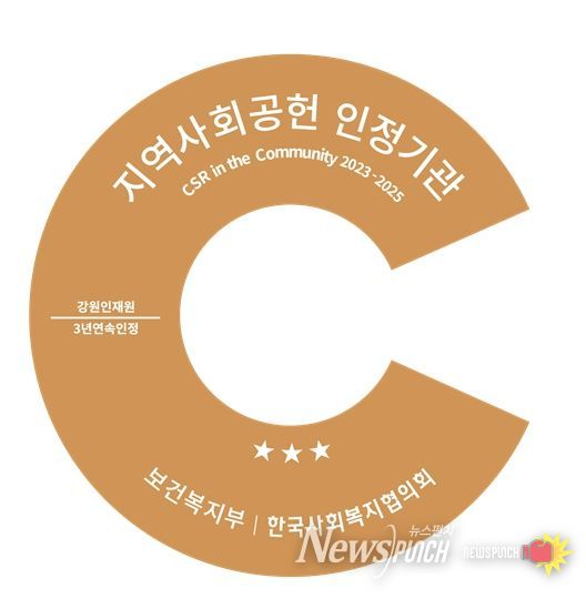 뉴스펀치 김길룡 기자 | 강원인재원이 보건복지부와 한국사회복지협의회가 공동으로 주관하는 ‘2025년 지역사회공헌 인정제’ 심사에서 3년 연속 인증 및 최고등급인 에스(S) 등급을 달성했다.