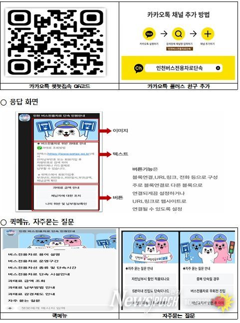 뉴스펀치 김길룡 기자 | 인천광역시는 오는 12월 1일부터 카카오톡을 기반으로 하는 24시간 ‘버스전용차로 단속 민원상담 챗봇 서비스’를 운영한다고 밝혔다.