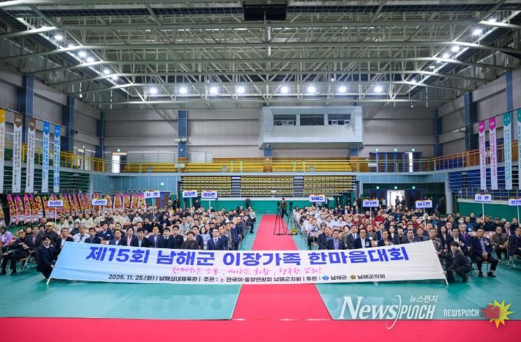 뉴스펀치 김길룡 기자 | 남해군은 25일 남해실내체육관에서 전국 이통장연합회 남해군지회가 주관한 ‘제15회 남해군 이장가족 한마음대회’가 성황리에 열렸다고 밝혔다.