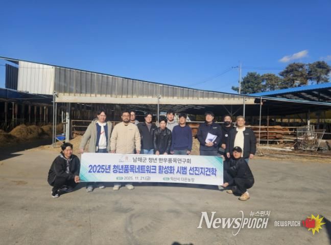 뉴스펀치 김길룡 기자 | 남해군 한우 청년품목연구회가 지역 한우 산업 발전에 기여하고 청년 농업인들의 역량을 강화하기 위해 지난 21일 익산시에 있는 다은농장(대표 신승일)을 방문하여 선진지 견학을 했다.