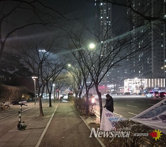 뉴스펀치 김길룡 기자 | 연수구는 지난 25일 주민 불편을 줄이고 쾌적한 환경을 조성하기 위해 실제 집회가 열리지 않는 기간에 설치된, 이른바 ‘집회 없는 현수막’을 야간 현장점검을 통해 일제 정비했다.