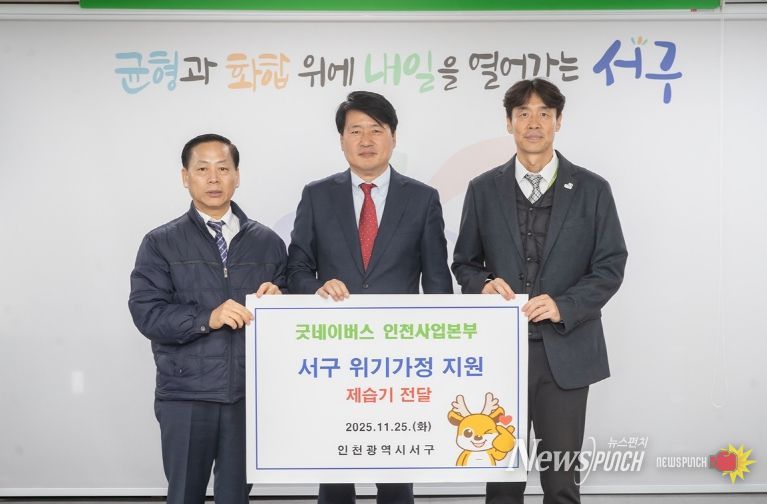 뉴스펀치 김길룡 기자 | 인천 서구는 지난 25일 굿네이버스 인천사업본부(홍상진본부장)으로부터 제습기 24대를 전달받았다.