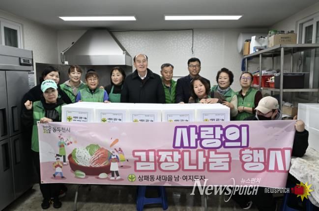 뉴스펀치 김길룡 기자 | 동두천시 상패동 새마을남·여지도자는 지난 25일 상패동 행정복지센터에서 관내 복지 사각지대 및 취약계층 25가구에 김장김치를 전달했다.