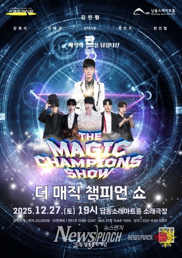 뉴스펀치 김길룡 기자 | 인천시 남동구 남동문화재단은 기획프로그램‘스포트라이트 시리즈’로‘더 매직 챔피언 쇼’를 12월 27일 오후 7시 남동소래아트홀 소래극장에서 개최한다고 26일 밝혔다.