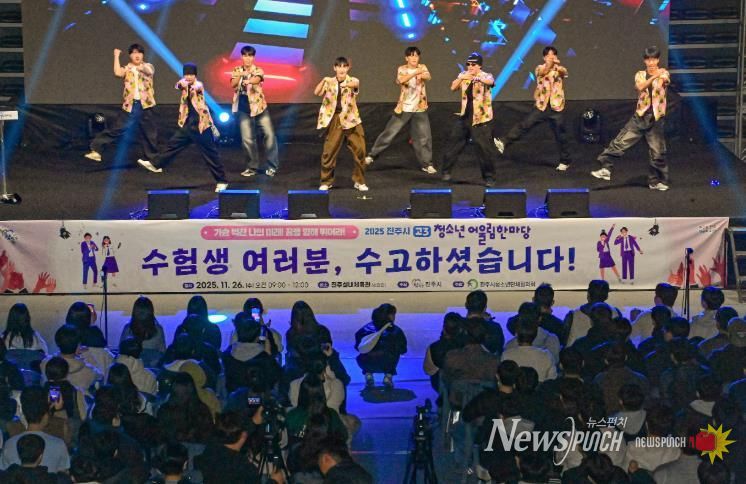 뉴스펀치 김길룡 기자 | 진주시는 26일 진주실내체육관에서 고3 수험생들을 대상으로 ‘2025 고3 청소년 어울림한마당’ 행사를 성황리에 개최했다.