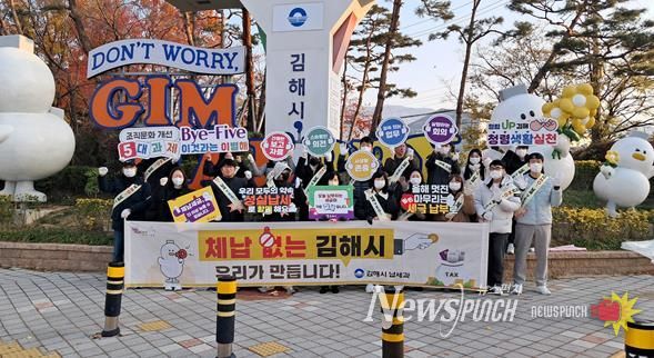 이번 캠페인은 ‘올해 멋진 마무리는 밀린 세금 납부로’, ‘체납 없는 김해시, 우리가 만듭니다’ 등의 문구가 적힌 현수막과 피켓을 활용해 진행됐으며, 시청 납세과 직원 20여 명이 참여했다.