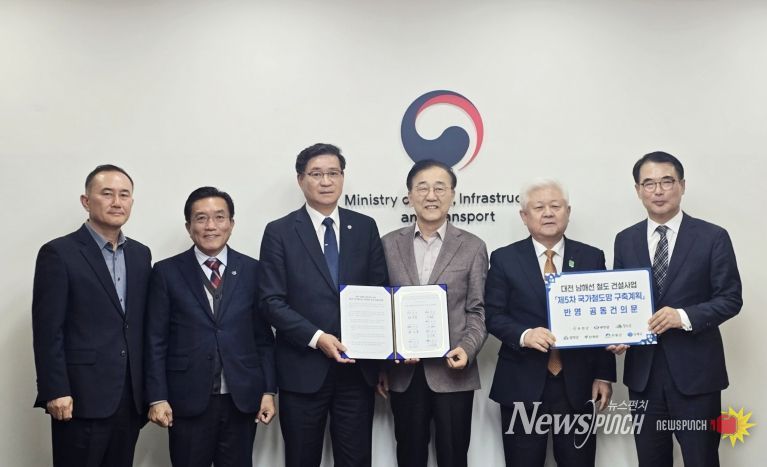 뉴스펀치 김길룡 기자 | 함양군을 비롯한 옥천, 무주, 장수, 산청, 하동, 남해군 등 7개 지자체 단체장이 25일 서울 정동 국토발전전시관에서 김윤덕 국토교통부 장관과 면담을 갖고 ‘대전~남해선 철도 건설 사업’을 제5차 국가철도망 구축계획(2026~2035)에 반영해 줄 것을 요청했다.