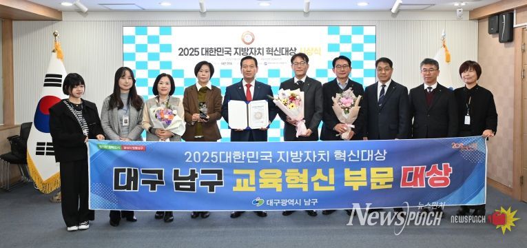 뉴스펀치 조평훈 기자 | 대구 남구는 ‘2025 지방자치 혁신대상 교육혁신 부문’에서 대상을 수상했다고 밝혔다.