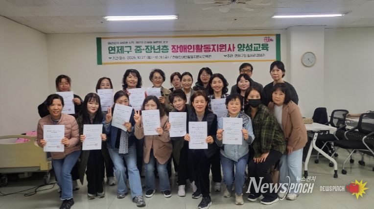 뉴스펀치 김길룡 기자 | 연제구는 10월 27일부터 11월 14일까지 중장년층 취업 지원과 일자리 창출을 위한 ‘장애인활동지원사 양성교육’을 운영했다.