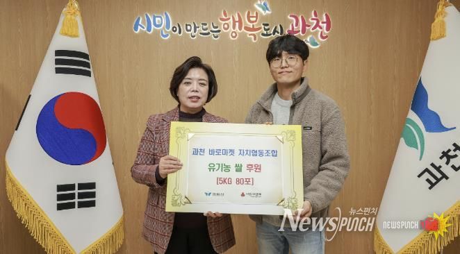 뉴스펀치 김길룡 기자 | 과천시는 과천 바로마켓 자치협동조합에서 지난 26일 어려운 이웃들을 위해 사용해 달라며 유기농 쌀 5kg 80포를 기부했다고 밝혔다.