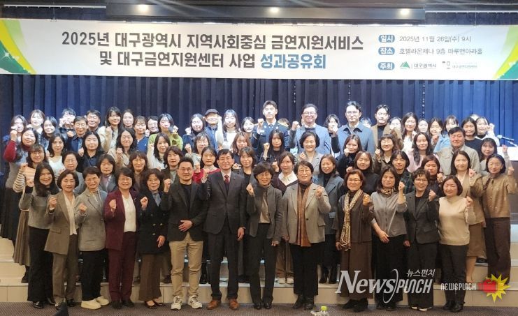 뉴스펀치 조평훈 기자 | 대구광역시는 대구금연지원센터와 함께 11월 26일 호텔라온제나에서 ‘2025년 대구광역시 지역사회중심 금연지원서비스 및 대구금연지원센터 사업 성과공유회’를 공동 개최했다.