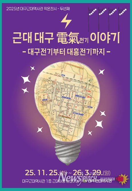 뉴스펀치 조평훈 기자 | ( 재)대구문화예술진흥원 박물관운영본부 소속 대구근대역사관은 전기(電氣)로 근대 대구사회의 일면을 살펴보는 ‘근대 대구 電氣전기 이야기 –대구전기부터 대흥전기까지-’ 작은전시를 11월 25일부터 2026년 3월 29일까지 1층 대구 근대여행 길잡이방에서 개최한다.