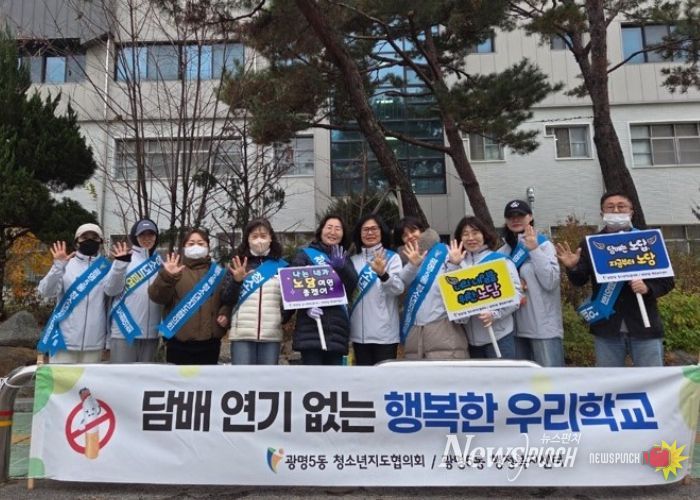 뉴스펀치 김길룡 기자 | 광명시 광명5동 청소년지도협의회는 지난 25일 광남중학교에서 청소년지도협의회 위원과 광명5동 주민센터 직원 등 13명이 참석한 가운데 청소년 금연캠페인을 열었다.