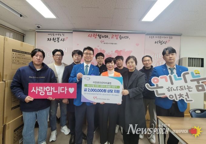 뉴스펀치 김길룡 기자 | 이천중앙로타리클럽은 11월 26일 관내 소외계층 가구의 아동·청소년 8명에게 400만 원 상당의 생필품을 지원하는 ‘2025년 아동·청소년 지원 물품 전달식’을 진행했다.
