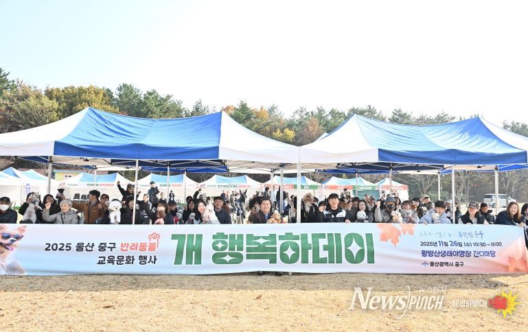 뉴스펀치 김길룡 기자 | 울산 중구가 11월 26일 오전 10시 30분 황방산 생태야영장 일대에서 반려동물 실외교육 문화행사 ‘개행복하데이’를 개최했다.