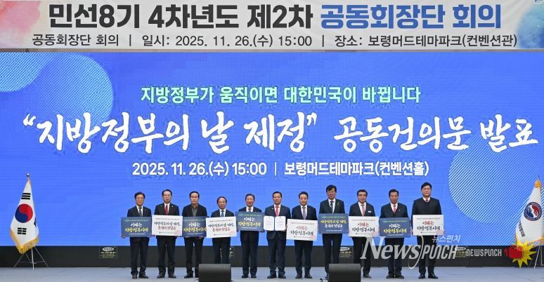 뉴스펀치 조평훈 기자 | 대한민국시장・군수・구청장협의회(대표회장 조재구 대구 남구청장)는 26일 보령 머드테마파크에서 민선 8기 4차년도 제2차 공동회장단회의를 개최하고, 지방정부의 위상 강화와 실질적 분권 실현을 위한 주요 현안을 논의했다.