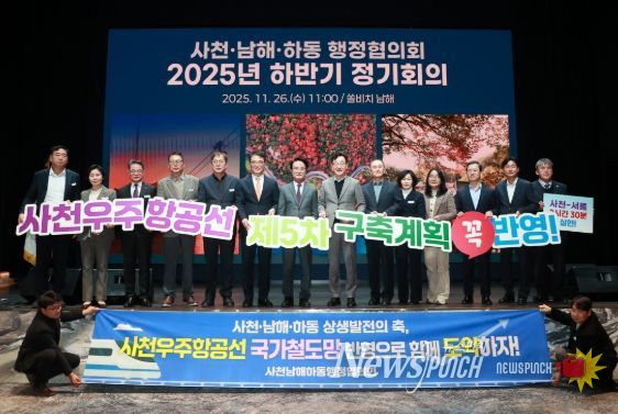 행정협의회 관계자들은 “서부경남의 산업·관광 성장 잠재력을 실현하기 위해서는 철도 인프라 확충이 반드시 필요하다”며 “사천우주항공선이 국가철도망에 반드시 반영될 수 있도록 세 지역이 한목소리로 대응하겠다”고 말했다.