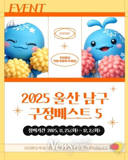 뉴스펀치 김길룡 기자 | 울산 남구는 2025년에 추진한 정책 중에서 구정 발전과 구민 삶의 질 향상에 기여하고 가시적인 성과를 거둔 정책을 구민이 직접 참여하는 설문조사를 통해 ‘구정베스트’로 선발한다고 밝혔다.