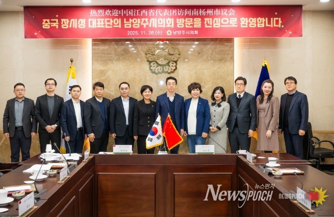 뉴스펀치 김길룡 기자 | 남양주시의회는 26일 의회 소회의실에서 중국 장시성 간강신구 방문단을 영접하고, 양 기관의 우호·협력방안을 논의했다.