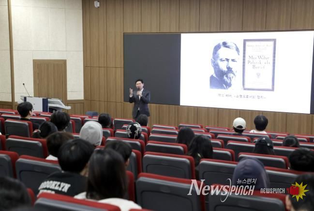 뉴스펀치 김길룡 기자 | 이상일 용인특례시장은 26일 오후 단국대학교 국제관에서 단국대 학생 100여 명을 대상으로 ‘사례로 배우는 리더의 리더십과 덕목’이라는 주제로 1시간 50분 동안 특강을 했다.