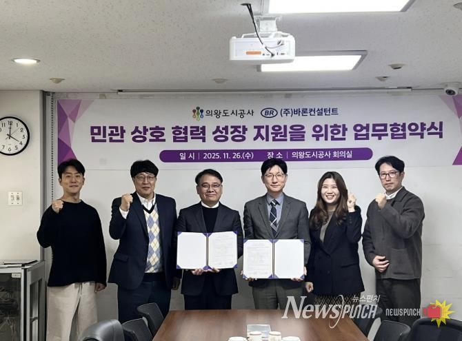 뉴스펀치 김길룡 기자 | 의왕도시공사가 ㈜바론컨설턴트와 11월 26일, 공사 사옥 회의실에서 혁신과 성장 지원을 위한 업무협약을 체결했다.