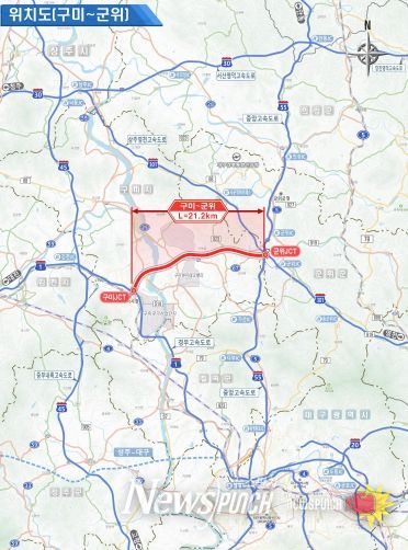 구미와 군위를 연결하는 구미-군위 고속도로는 대구 북부 중앙고속도로와 경북 서부 경부고속도로를 동서로 연결하는 국가간선도로망이며, 왕복 4차선 연장 21.2km 규모로 총사업비 1조 5,627억 원을 투입해 2029년 착공을 목표로 국가 재정 사업으로 본격 추진 된다.