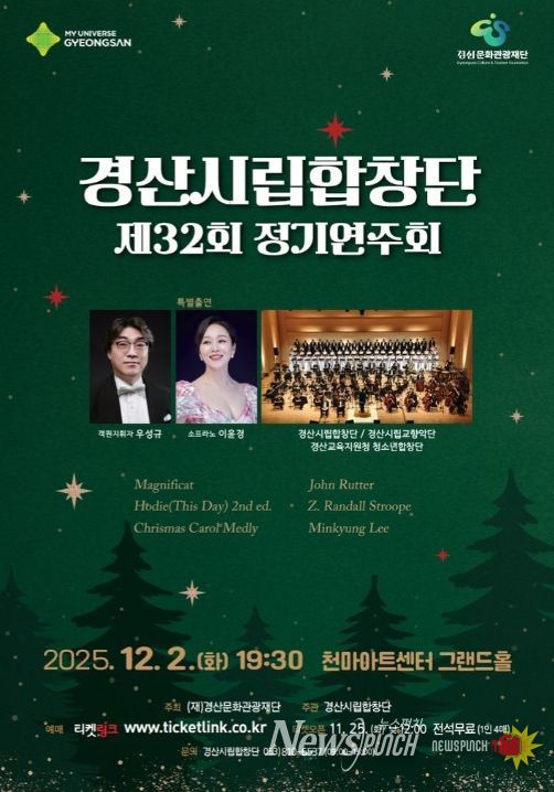 뉴스펀치 김길룡 기자 | 경산시립합창단이 오는 12월 2일 오후 7시 30분 영남대학교 천마아트센터 그랜드홀에서 2025년 마지막 정기연주회를 개최한다.